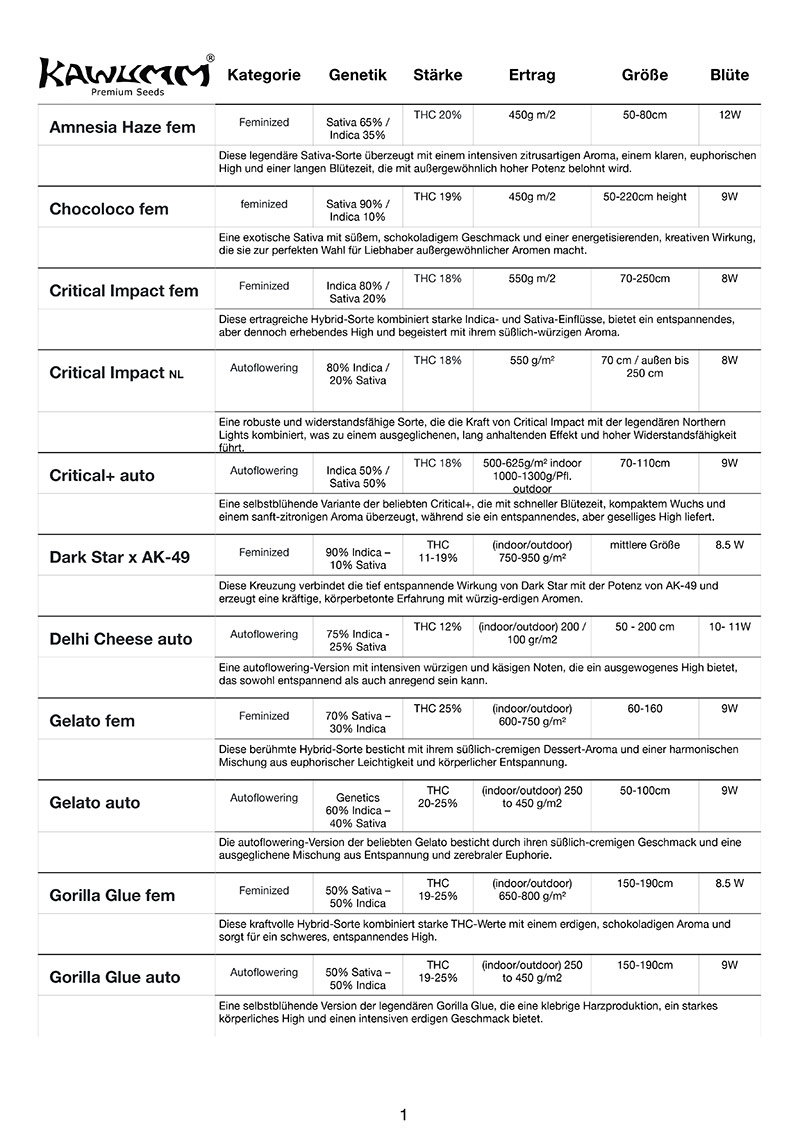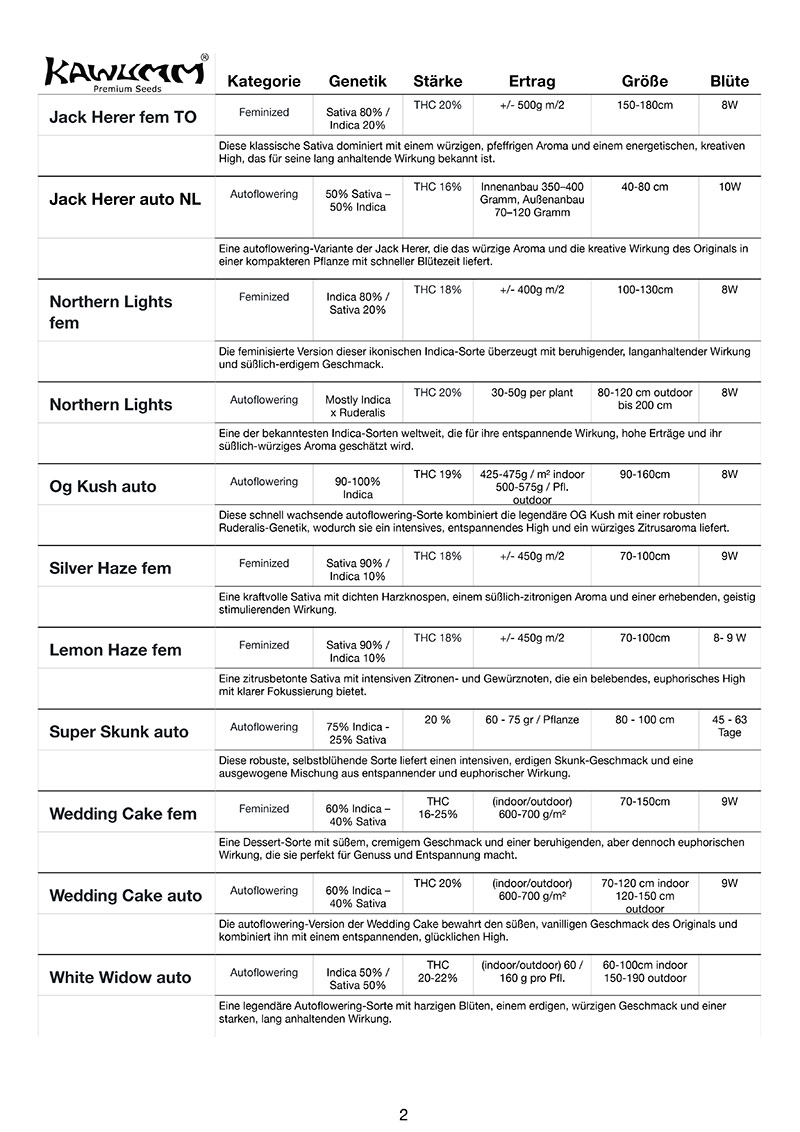 Aromen, Wirkungen und Anbaueigenschaften findest Du in der Übersicht auf dieser Seite.